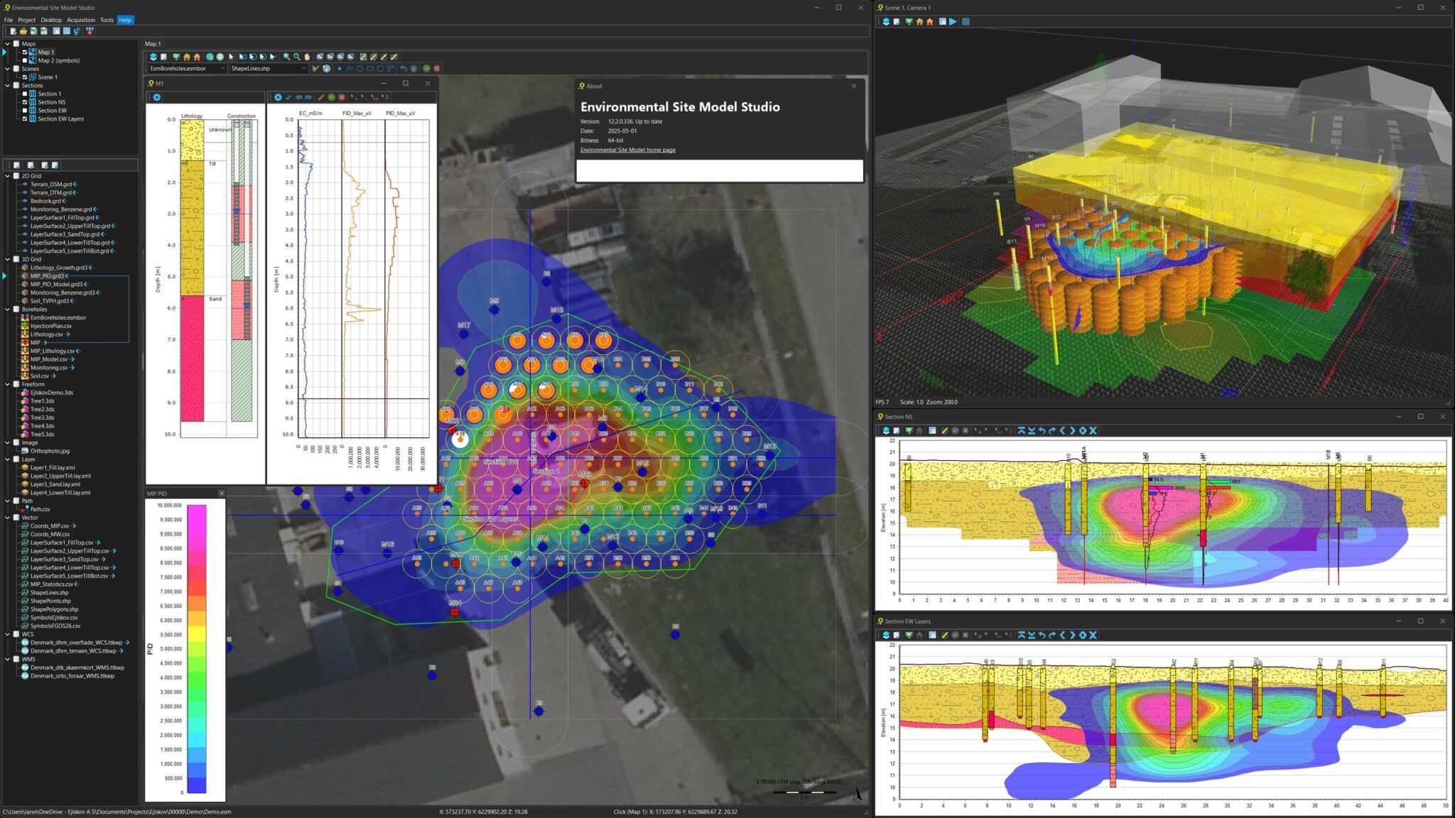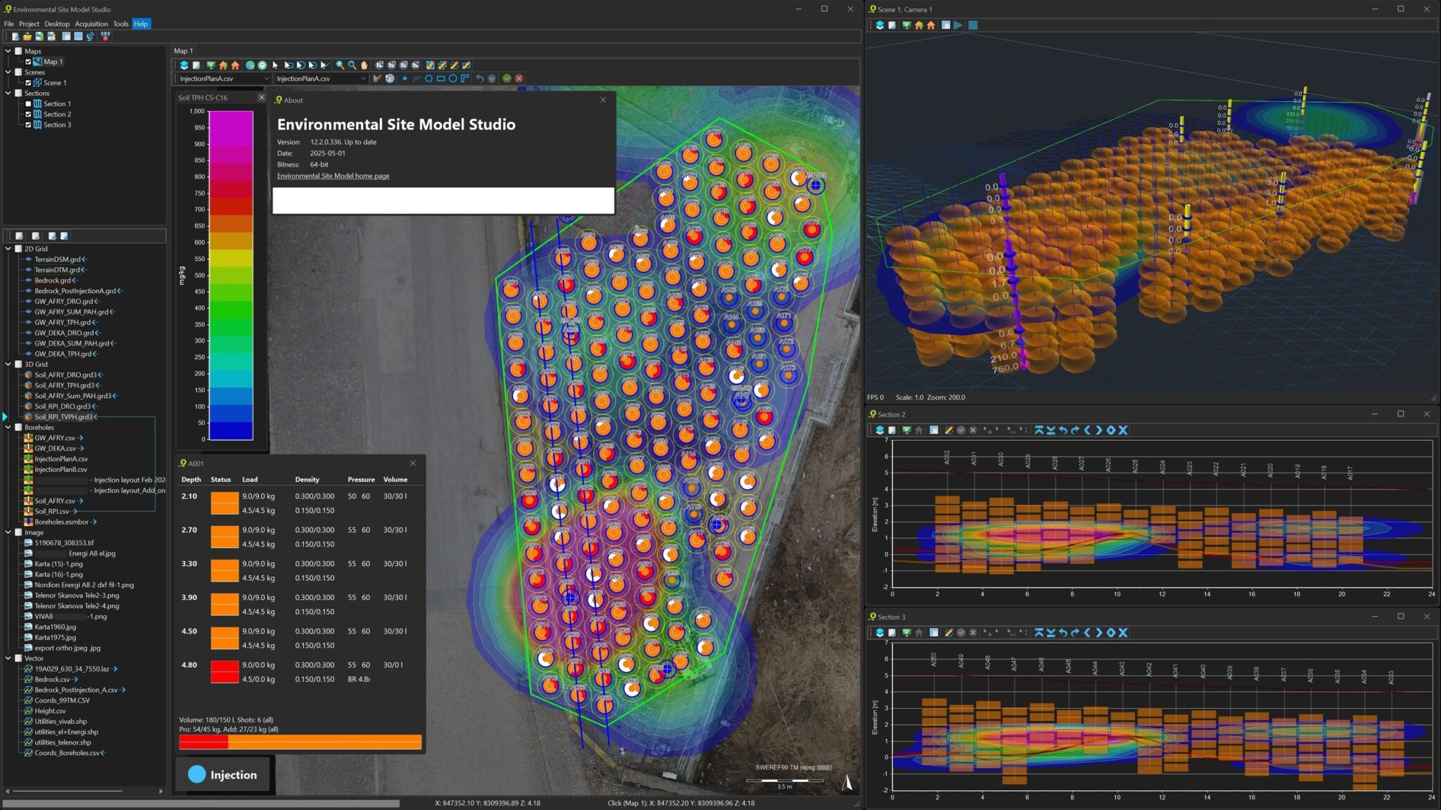 Explore our images and longer videos showcasing Environmental Site Model Studio in real workflows. See maps, cross sections, 3D scenes, and reporting examples from investigation through remediation and monitoring.